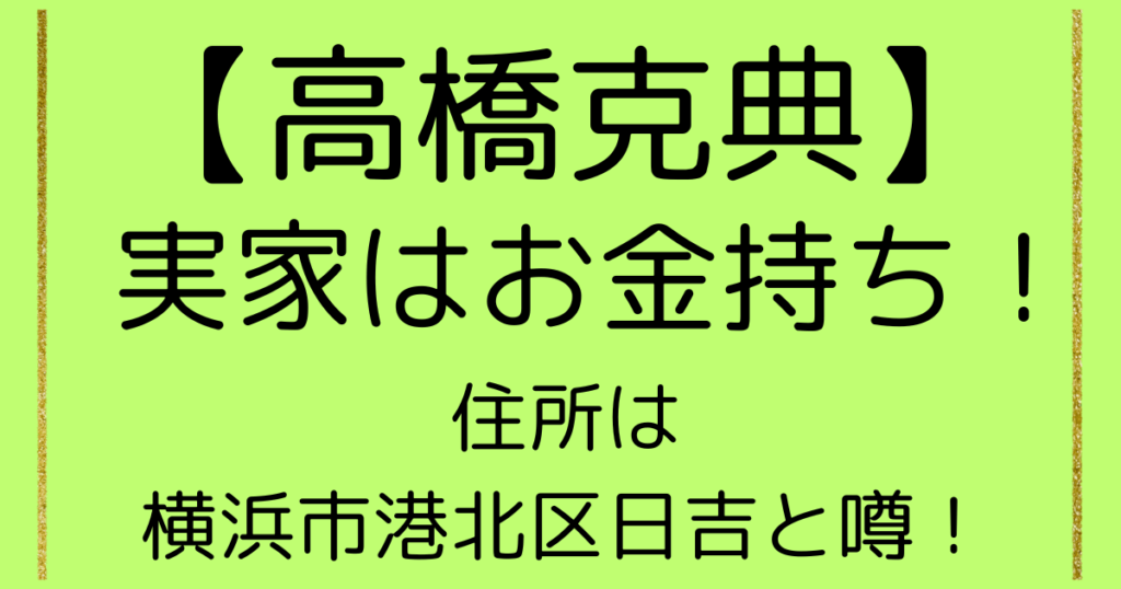 高橋克典の実家はお金持ちで両親がエリート!住所は横浜市港北区日吉と噂!