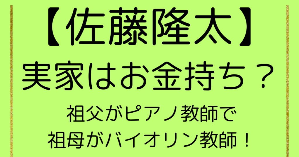 佐藤隆太の実家はお金持ち?祖父がピアノ教師で祖母がバイオリン教師!
