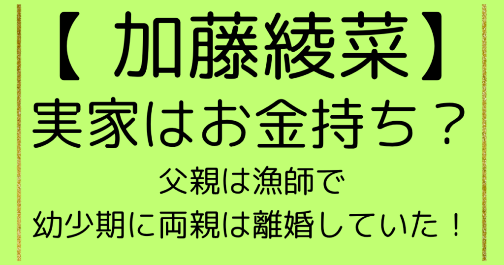加藤綾菜の実家はお金持ち?父親は漁師で幼少期に両親は離婚していた!