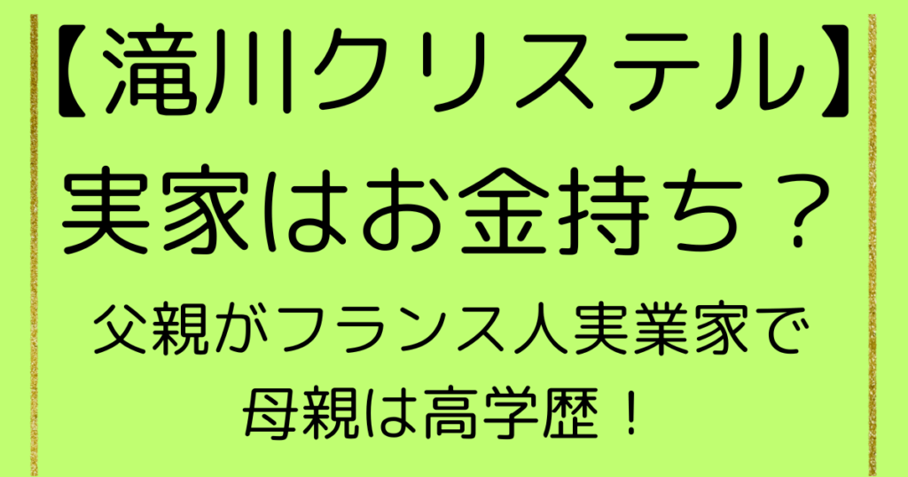 滝川クリステルさんは、フリーアナウンサーとして知性と上品な佇まいで多くの人を魅了しています。 そんな滝川クリステルさんですが、どうやら実家がお金持ちだそう。 それは本当なのでしょうか? そこで今回の記事は、 ・滝川クリステルの実家はお金持ち... -