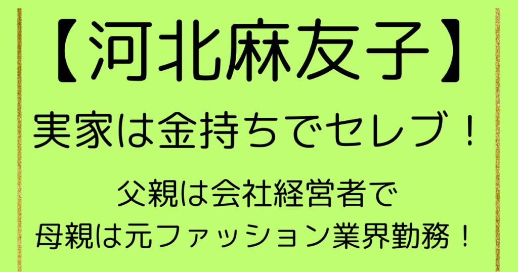 河北麻友子の実家は金持ちでセレブ!父親は会社経営者で母親は元ファッション業界勤務!