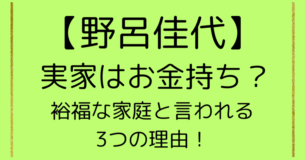 【画像】野呂佳代の実家はお金持ち?裕福な家庭と言われる3つの理由!
