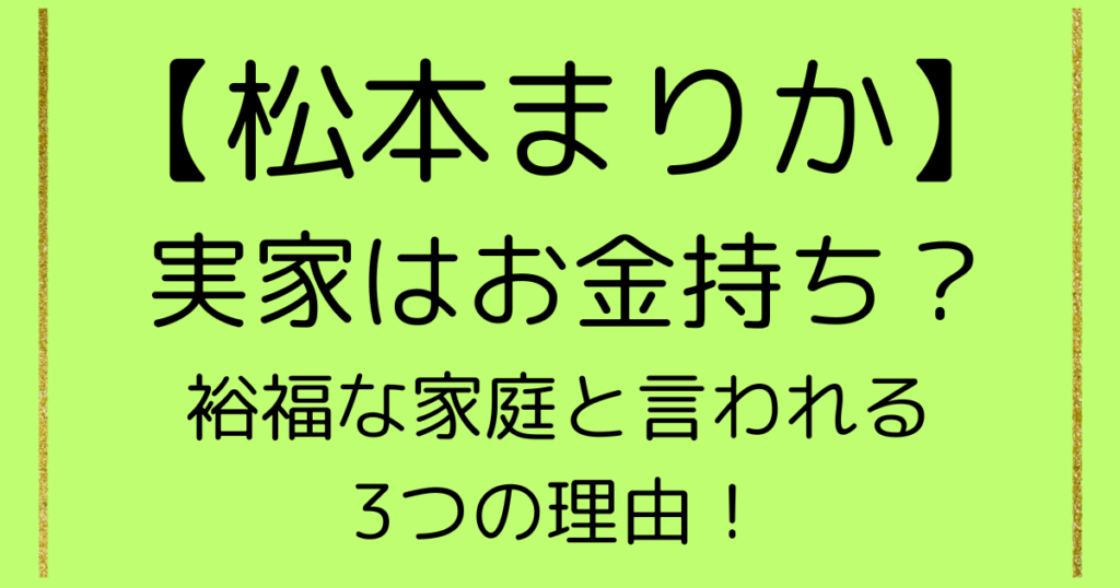 【画像】松本まりかの実家はお金持ち?裕福な家庭と言われる3つの理由!