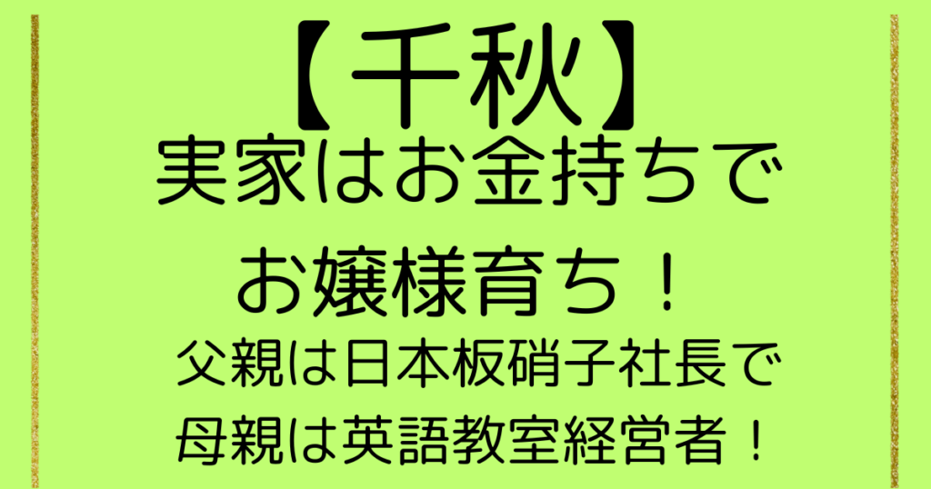 千秋の実家はお金持ちでお嬢様!父親は日本板硝子社長で母親は英語教室経営者!