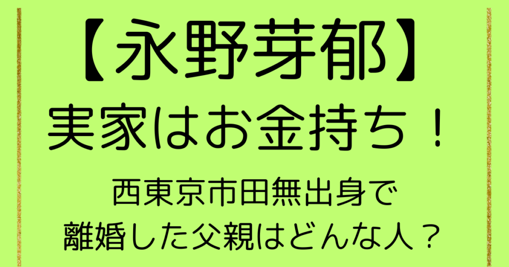永野芽郁の実家はお金持ち!西東京市田無出身で離婚した父親はどんな人?