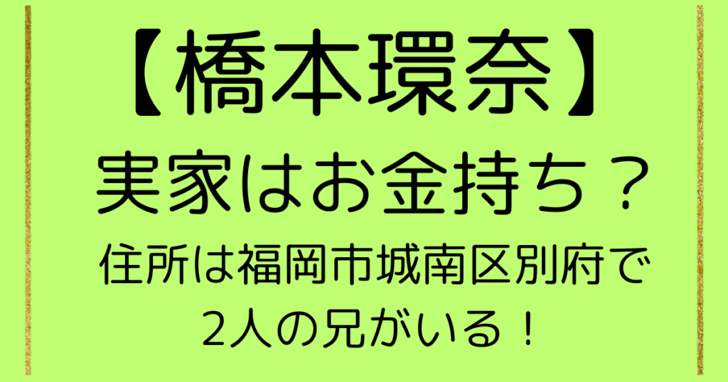橋本環奈の実家はお金持ち!住所は福岡市城南区別府で2人の兄がいる!