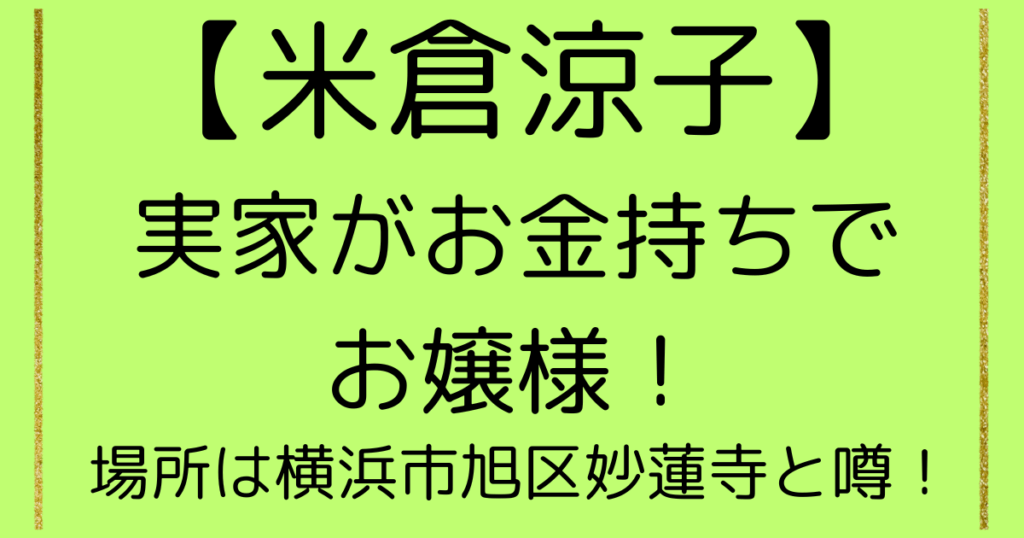 米倉涼子は実家がお金持ちでお嬢様!場所は横浜市旭区妙蓮寺と噂!