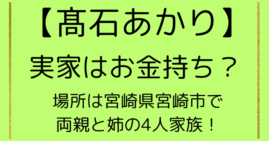 髙石あかりの実家はお金持ち?場所は宮崎市で両親と姉の4人家族!