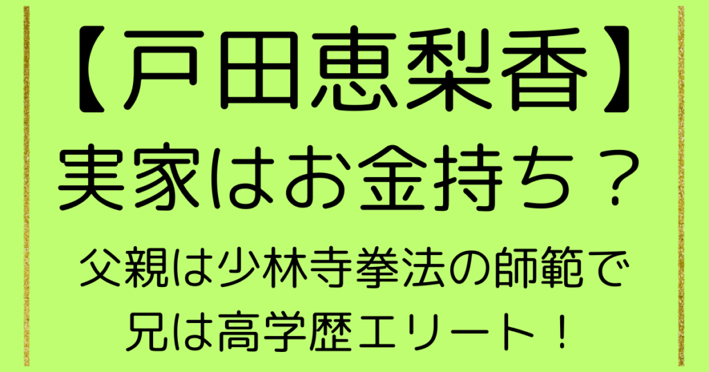 戸田恵梨香の実家はお金持ち?父親は少林寺拳法の師範で兄は高学歴エリート!