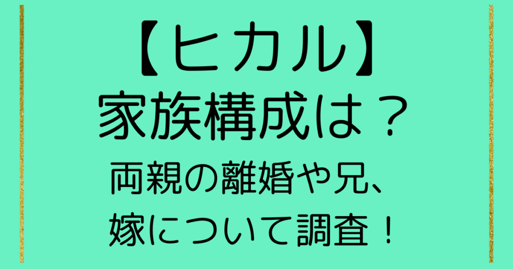 【家族構成】ヒカルの父親と母親は離婚していた!兄はビジネスパートナー!