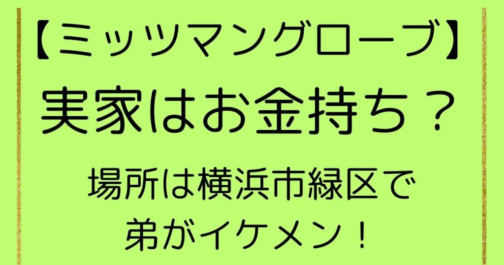 ミッツ・マングローブの実家はお金持ち?場所は横浜市緑区で弟がイケメン!