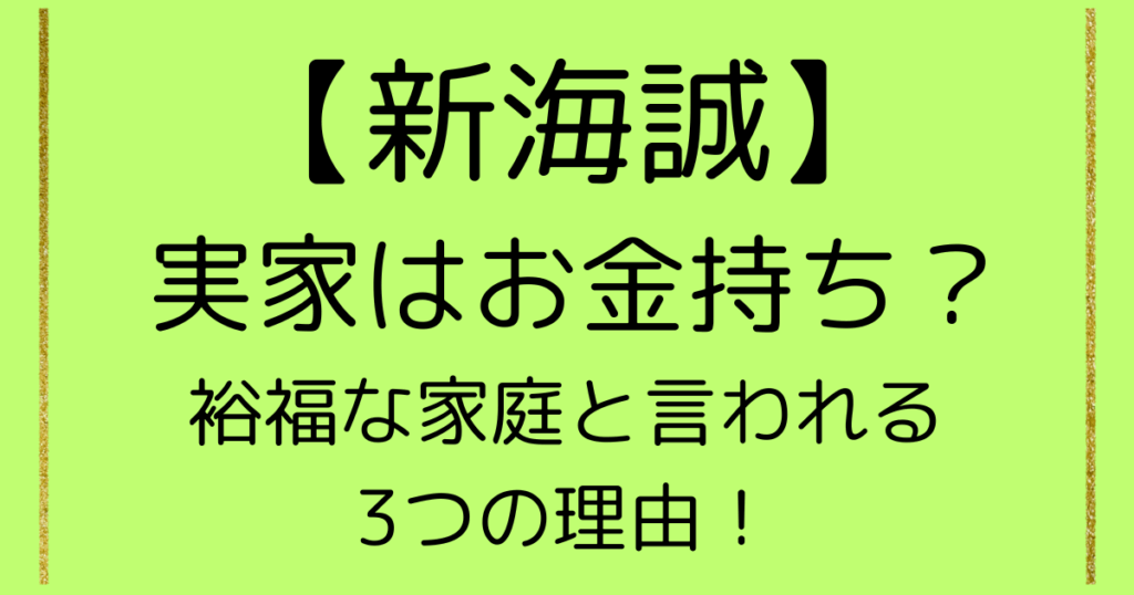日本が誇るアニメーション監督として、数々の大ヒット映画を世に送り出してきた新海誠さん。 その繊細で美しい映像表現と、心に響くストーリーは、国内外を問わず多くのファンを魅了しています。 そんな新海誠さんの実家が「お金持ち」なのではないかとい... -