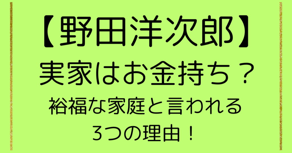 【画像】野田洋次郎の実家はお金持ち?裕福な家庭と言われる3つの理由!