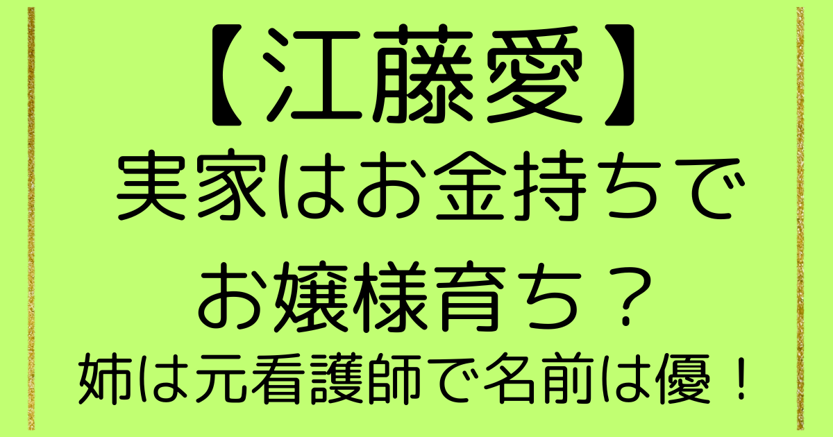 江藤愛の実家はお金持ちでお嬢様育ち?