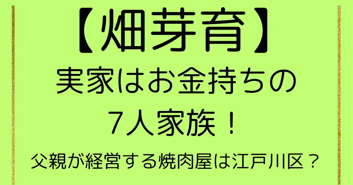 畑芽育さんの実家が裕福であるという噂は、父親の焼肉店経営や、5人姉妹という大家族を都内で養っているという事実から、お金持ちなのかもしれません。