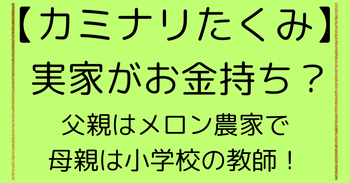 カミナリたくみさんの実家が「お金持ち」と言われているようですが、裕福なご家庭だったと思われます。