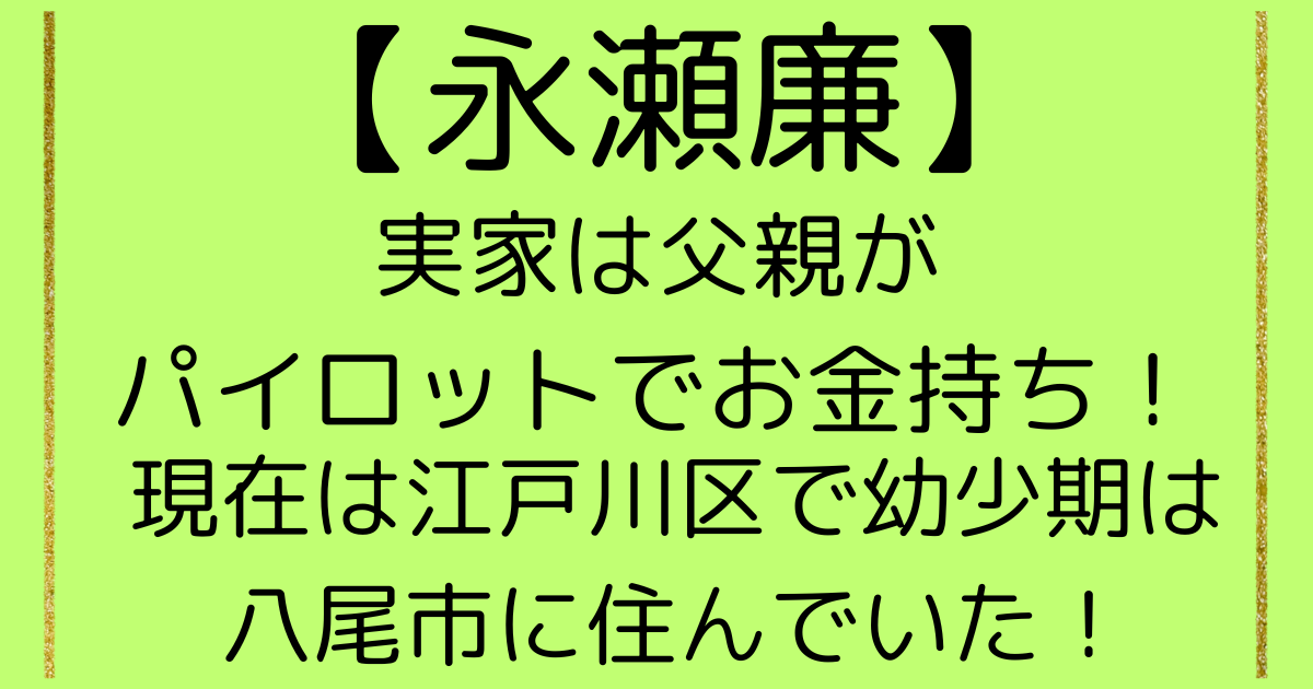 永瀬廉の実家は父親がパイロットでお金持ち!