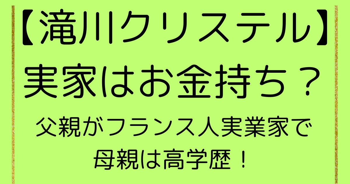滝川クリステルさんの実家が「お金持ち」と言われているようですが、裕福なご家庭だったと思われます。