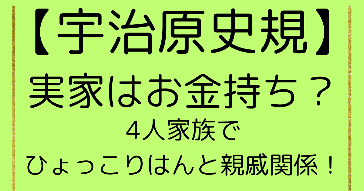 これらすべてを惜しみなく投資できる環境にあったということは、宇治原史規さんの実家が相当裕福だったことの証明といえるでしょう。