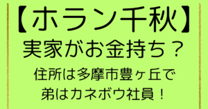 ホラン千秋の実家はお金持ち?住所は多摩市豊ヶ丘で弟はカネボウ社員! ホラン千秋さんは、ニュースキャスターやタレントとして幅広く活躍するハーフタレントですね。 そんなホラン千秋さんですが、どうやら実家がお金持ちだそう。 それは本...